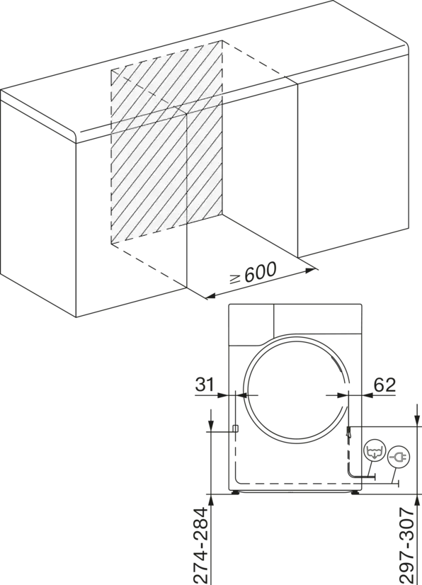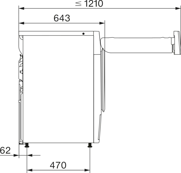 | Dubina uređaja pri otvorenim vratima u mm |
