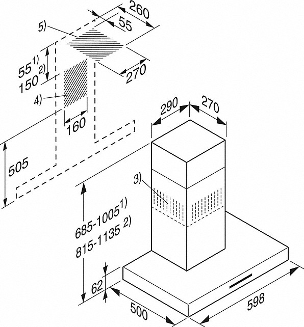 | Ukupna visina nape kod odvoda zraka i vanjskog ventilatora u mm |